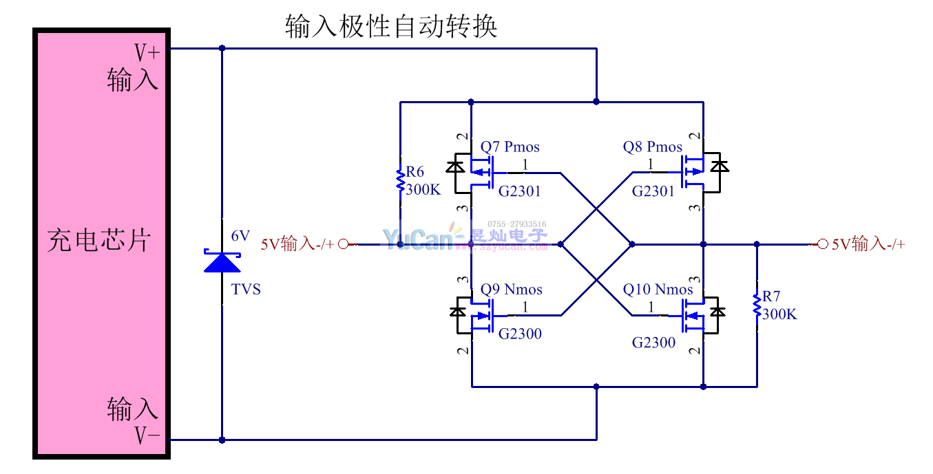 6:此電路可用于替換常見整流橋,因?yàn)镸OS導(dǎo)通電阻遠(yuǎn)遠(yuǎn)小于硅二極管,所以基本不會(huì)損失能量不會(huì)發(fā)熱